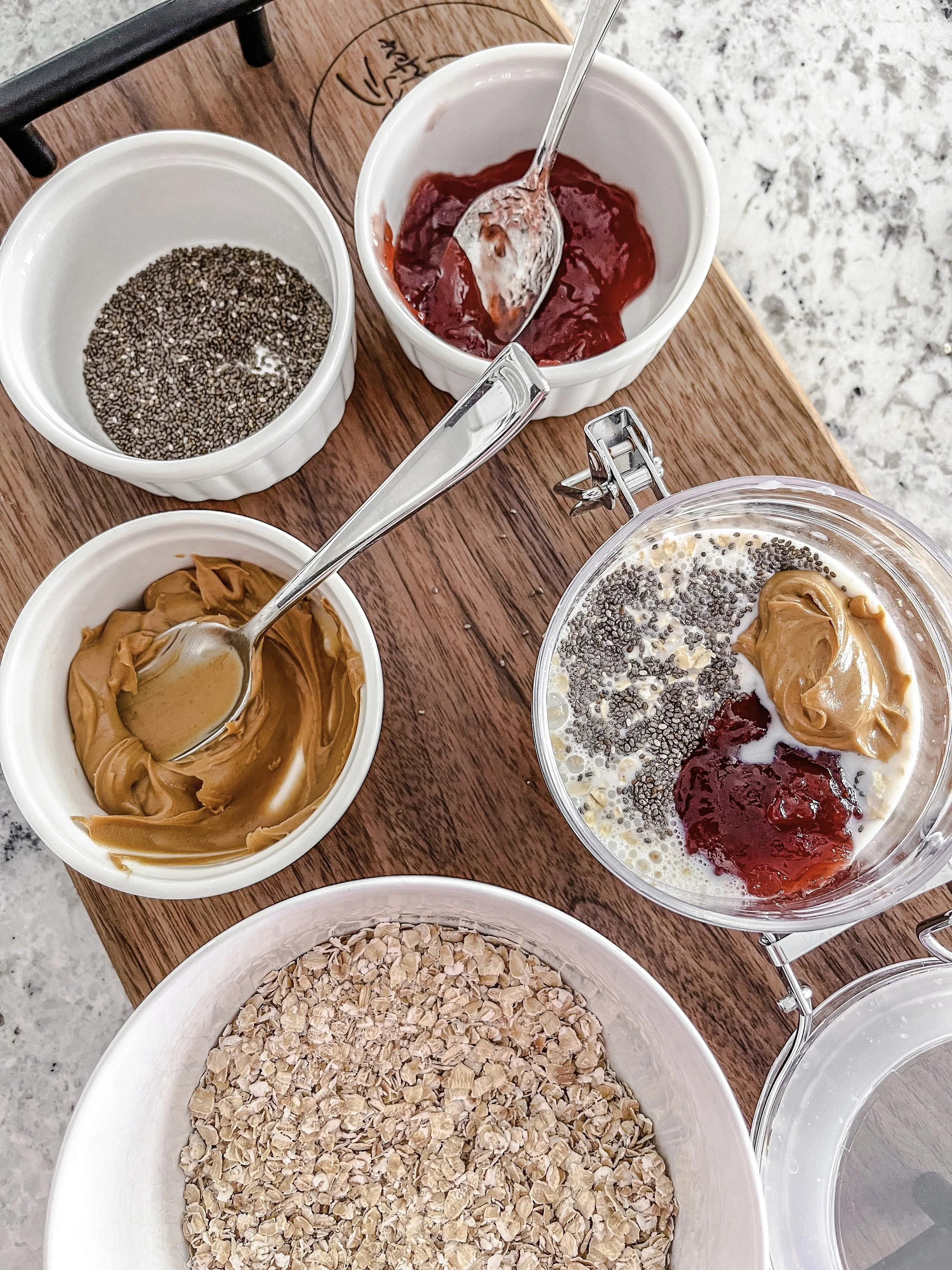 This peanut butter and jelly overnight oats recipe is a great no-cook option for busy mornings or to help with meal prep during the week. All you have to do is prep them the night before and you’ll have a delicious breakfast ready to go the next morning!