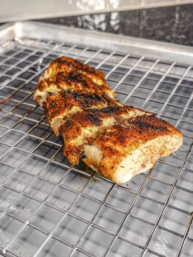 Next up, take the fish out of the fridge and pat them dry. Coat the fish with avocado oil and season both sides with black magic – go crazy, more flavor, the better! Place those fish fillets on the grill -flipping them over halfway through- until you have an internal temp of 145 degrees or 12-15 minutes at 350 degrees. If you are making these in the oven, cook at 350 degrees for 15-20 minutes. I also provided a link below for the Black Magic seasoning.